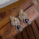 antique gold finish american diamond unique designer AD earring with purple block stone.