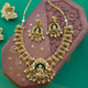 Antique gold finished real gold inspired goddess Lakshmi with coral beads neckpiece set with chandballi earrings.