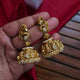 Antique gold finish micro ad stone and peacock design gold replica beautiful bridal bold jhumka.