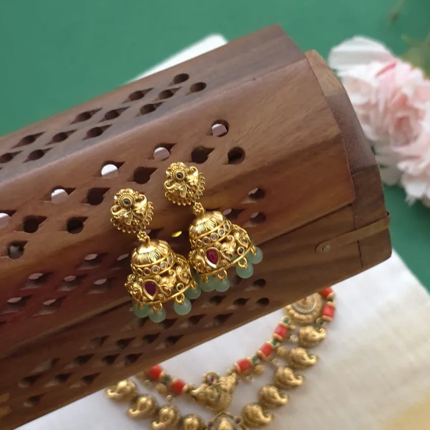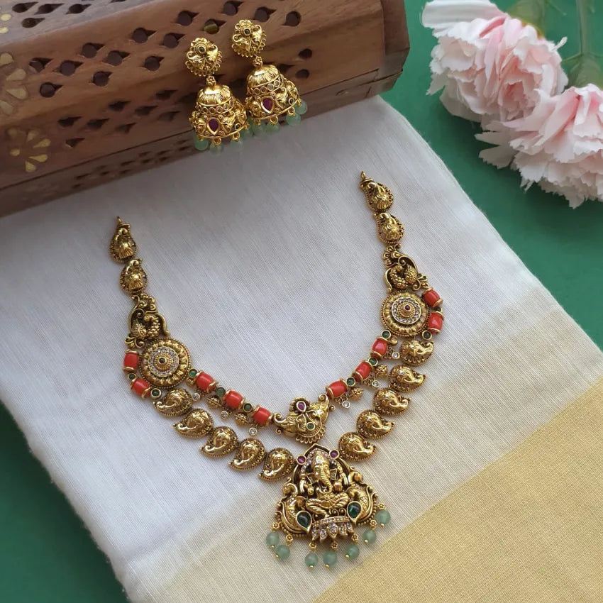 Antique gold finish dual layer Lord ganesha necklace set with jhumka.