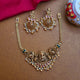 Antique gold finish goddess Lakshmi and peacock designed adigai/neckpiece with golden pearl drops necklace set and jhumkas.