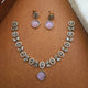Victorian-finished floral designed magenta stone party wear AD neckpiece set with earrings.