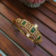 AD Party wear real gold inspired antique gold finish white micro-stone and green block stone openable bracelet.
