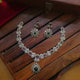 Victorian finish American diamond elegant multi stone work beautiful guest look neckpiece set with earrings.