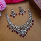 Victorian finish american diamond Goddess Lakshmi red beads droplets neckpiece set with earrings.