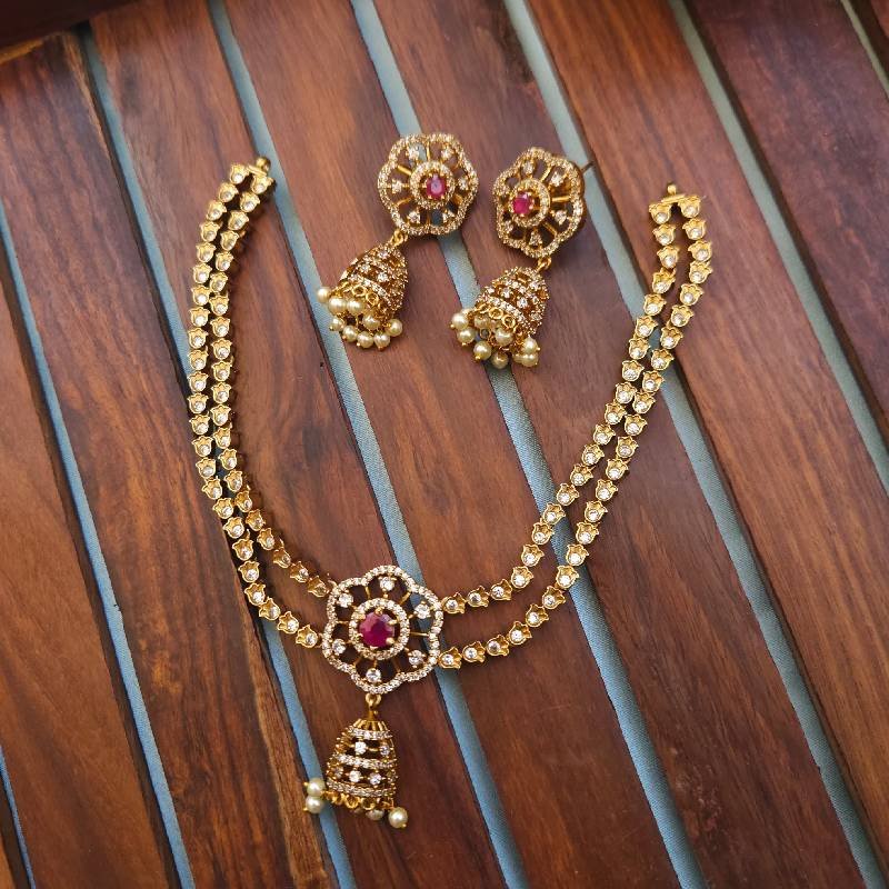 Matte gold finish floral pattern AD dual layer neckpiece set.