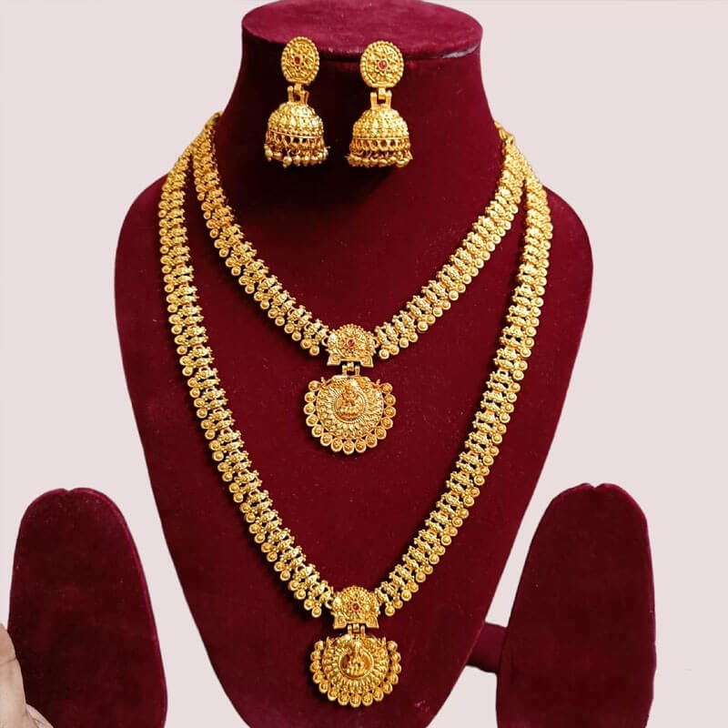 Matte gold finish keralaties combo Neckpiece comes with a pair of jhumkas .