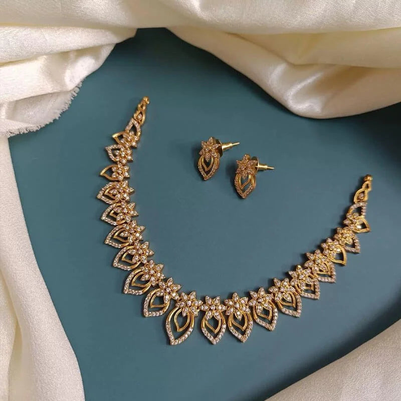 American Diamond whites stone antique premium finish neckpiece comes with a pair of earrings.
