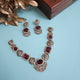 American Diamond Peacock designed bold block stone work premium matte finish neckpiece with a pair of bold earrings.