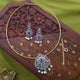Antique gold finished floral peacock designed purple block stone with ad microstone hasli detachable (2 in 1 Tikka and pendant) pendant neckpiece set with earrings.