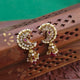 Antique gold finished peacock designed cluster pearl half moon jhumka.