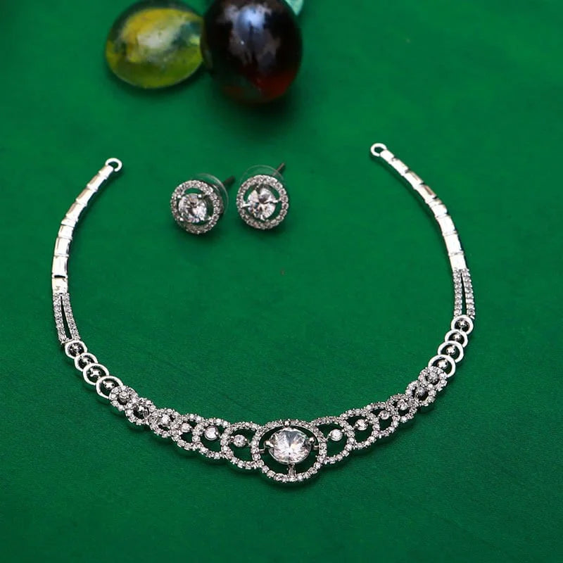 Premium american diamond silver finish neckpiece comes with a pair of earbuds.