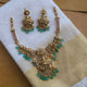 Antique gold finish 3D design goddess Lakshmi kemp stones with mint green beads neckpiece set with earrings.
