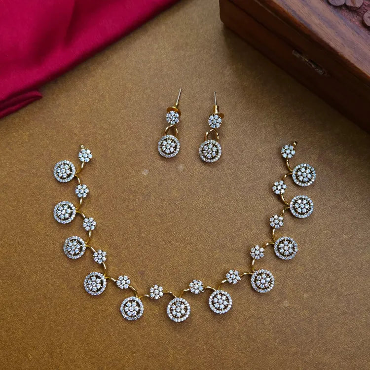 American Diamond antique gold finish floral design indo western party wear set with earrings,