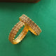 Antique gold finished traditional Lakshmi coin with white stones bangle.