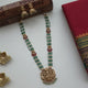 Antique matte gold finish 3D lakshmi pendant green beaded premium long haram set with jhumka.