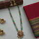 Antique matte gold finish 3D lakshmi pendant green beaded premium long haram set with jhumka.