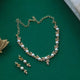 American Diamond micro stones and pearl worked gold finished party wear neckpiece set with earrings.