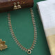 Antique gold finish american diamond with emerald stones mango designed long haram set with jhumka.