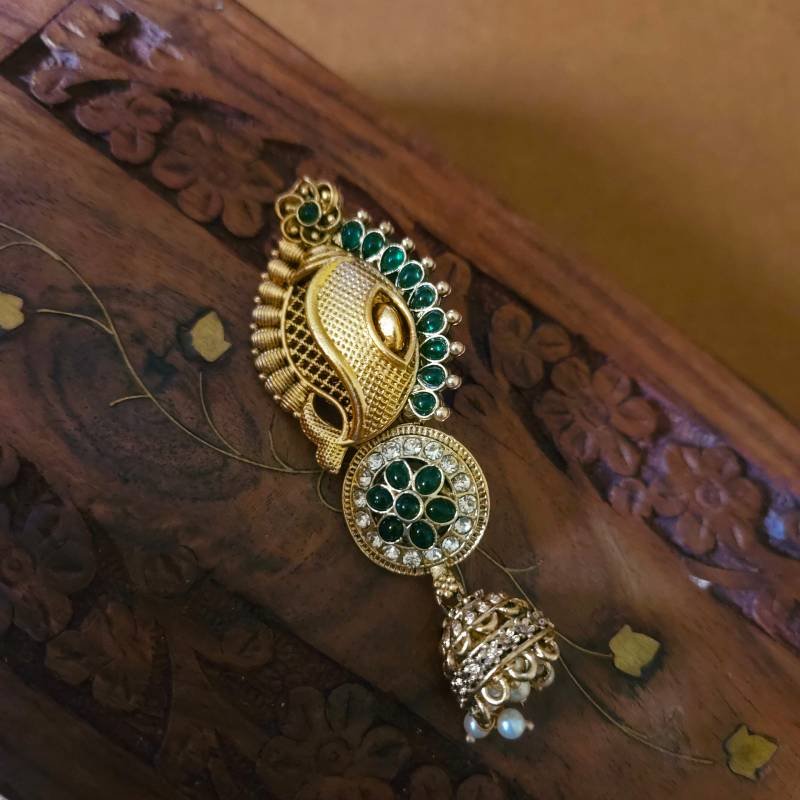 Matte gold finish unique sangu designed kempstone work, jadabilla chotti.