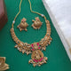 Matte gold finish temple designer goddess Lakshmi neckpiece set with earrings.