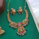 Matte gold finish temple designer goddess Lakshmi neckpiece set with earrings.