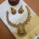 Antique gold finish goddess Lakshmi real gold inspired temple designer neckpiece set with jhumka.
