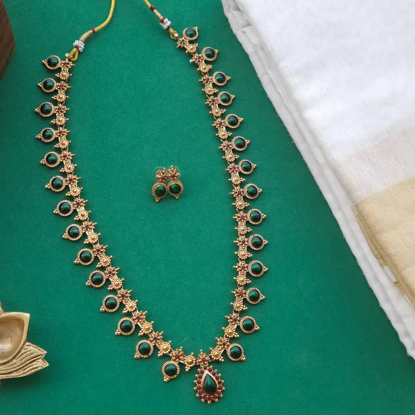 Antique matte gold finish kerala style palakka long haram set with earrings.