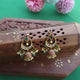 Antique gold finish kemp stones peacock design exclusive jhumka set.