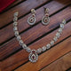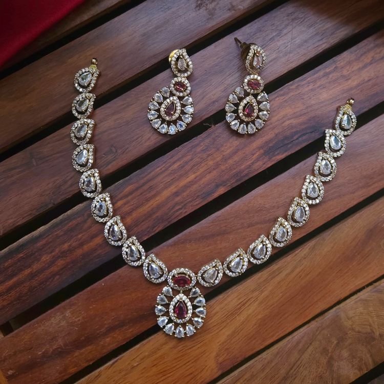 American Diamond Victorian finish floral design elegant stone and red block stone neckpiece set with earrings.