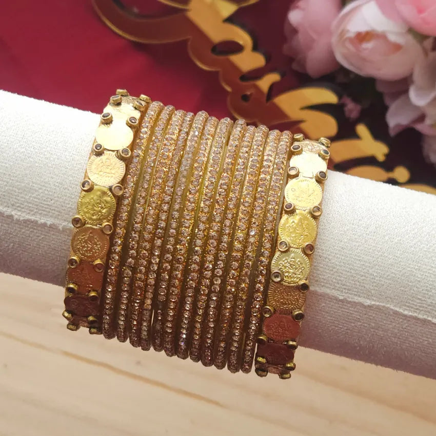 Sparkle Designer Glass Bangles with Lakshmi Coin Bangles-Gold