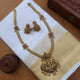 Antique matte gold finish goddess Lakshmi and peacock design kemp stone haram set with jhumka.